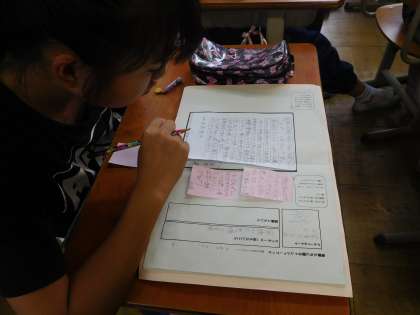 本のよさを伝えるためにより効果的な書き方はないか,友達と読みあいをしました。