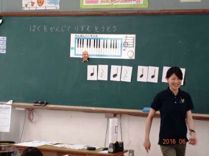 1年生の教室から,鍵盤ハーモニカの音が聞こえてきます。