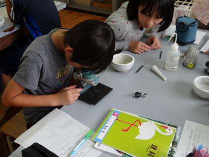 初めてつかうえ付き針も,「これあぶないものやな。」と,まわりの人を気遣いながら準備を進めてさぁのぞいて見よう!