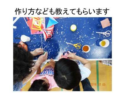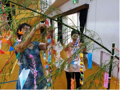 飾り物の作り方などを,教えていただいて,短冊には願い事を。