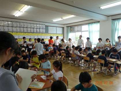 今日は,校内の先生たちの授業を通しての研修会。北上支部の英語活動主任の先生方も他校から参加してくださいました。