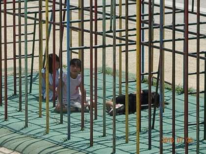 まず,鉄棒が熱い。滑り台の面なんか,とても熱い。触ってみましたが,目玉焼きが焼けるんではないかという熱さ。