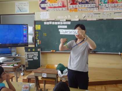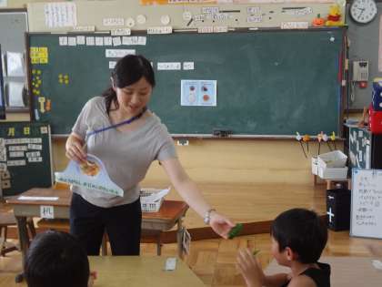和み給食の日,栄養指導をしていただきました。「京野菜」について教えて実物を見せてもらいにおいもよくわかりました。賀茂ナスは,「アッ知ってる!」と嬉しそうに話していました。