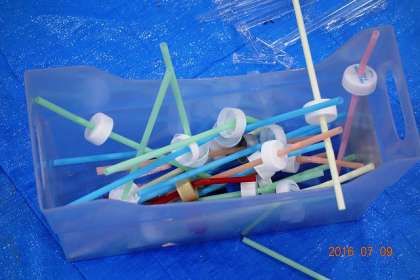 穴にストローをさすのが,ちょっと難しいので,予め大人が蓋にストローを通しておきました。
