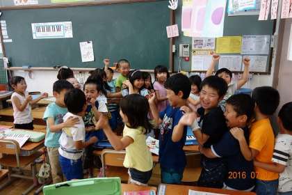 たかが「じゃんけん」,されど「じゃんけん」。じゃんけんをする先頭の子どもたちの勝敗に,息をのむ子どもたち。顔が真剣そのもの。