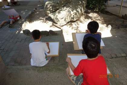 6年生が,写生をしています。いろんなところで写生をしているので,何を描いているのか聞きますと,「小学校生活で,思い出に残っている場所」だそうです。こんなことを聞くと,「ああ,この子たちも卒業するんだなー」 と感傷的になってしまいます。