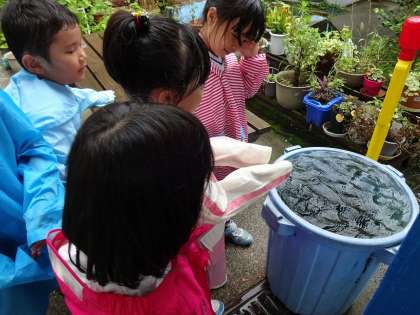 雨を見たりさわったり,きいたり,おもいっきり雨を楽しみました!
