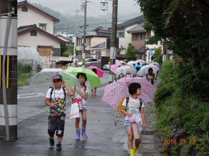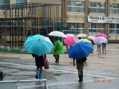 登校の様子 突然の豪雨