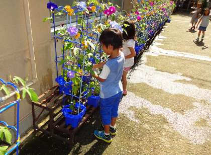 一生懸命世話をしてくれたから,朝顔も大きな花を咲かせることができました。