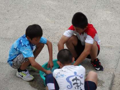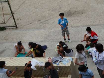 職員室のそばから,楽しそうな声が響いてきます。