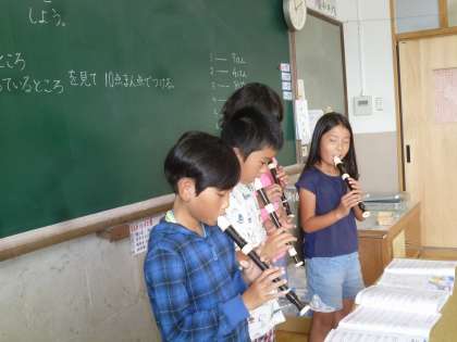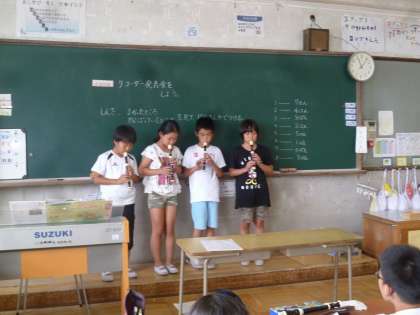 課題曲の中からグループで,演奏する曲を決めて,発表会をしました。この日に向けてグループで練習したり,家で練習したりしてきました。グループで息を合わせて演奏する姿が素敵でした。