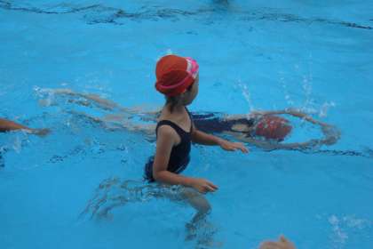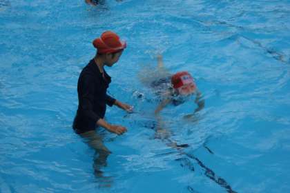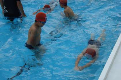 一人が泳いで一人が寄り添ってアドバイス・応援などなど・・・なんとも微笑ましい光景です。