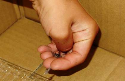 よく見ると,箱の隅っこに,小さなコオロギが1匹。