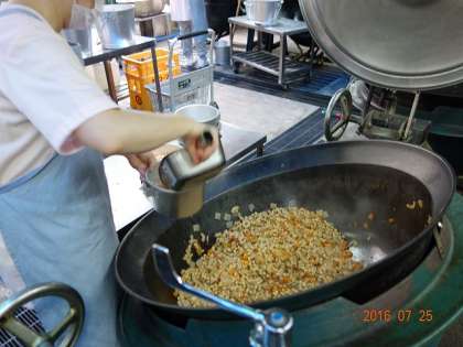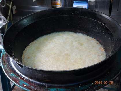 いい匂いがするので,においに誘われて給食室へ。相変わらず,サハラ砂漠のような熱気(サハラ砂漠に行ったことないけど)