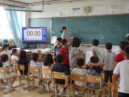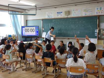 4年の教室を見回ろうと,急いで2校舎に行ったのですが,間に合わず。2組だけが,ゲームの最終段階を迎えたところ。