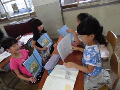 詩を作った後は,2人ペアで発表会。自分たちの作った詩を嬉しそうに発表していました。