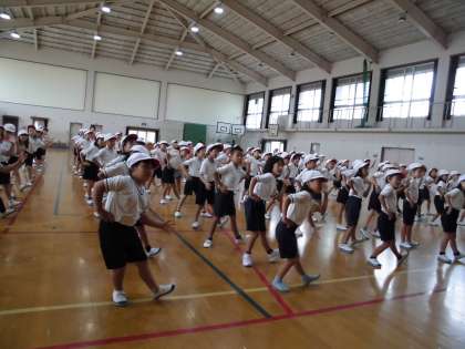 体育館で,ダンスの練習。去年よりもダンスが難しくなっていますが,頑張って練習しています。