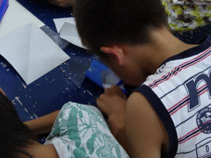 今日は,少年補導さん主催のふれあい課外教室「飛距離がのびる飛行機づくり」がありました。昨日,紙飛行機を飛ばすのに,大学生や専門家が競い合っている番組を見たばかりなので,わくわくしながら体育館へ足を運びました。10時までに,紙飛行機の先生が,まずは大人の方に紙飛行機づくりを教えてくださり,みんなで試しに飛ばしてみます。同じ作り方なのに,飛び方様々でどうやって飛距離を伸ばすかみんな紙飛行機を手に翼の状態を調整して・・・と,子どもが来る前から熱気に満ちた体育館でした。