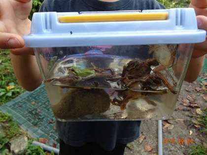 子どもたちも,足をボリボリかきながらの,カエル探し。