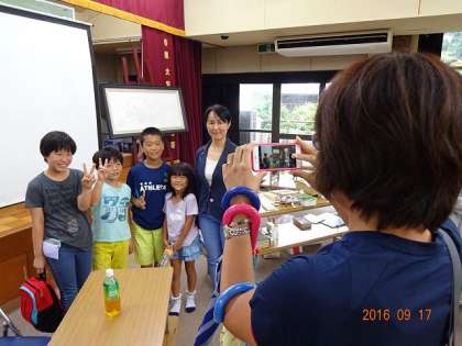 閉式後,子どもたちと長谷川先生とで記念写真を撮っておられるお母さんを発見。