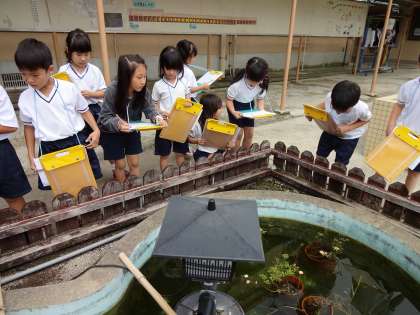こちらは,金魚とメダカを観察しています。