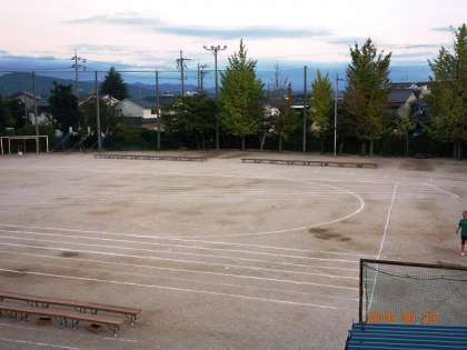 午後5時半。運動場を見ると,明日の運動会を待つばかりの状態。