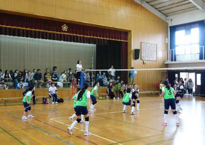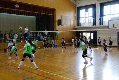 区民運動会を抜け出して,子どもたちのバレーボール交歓会の応援へ。