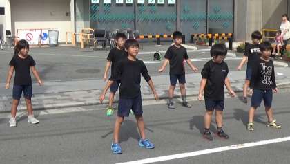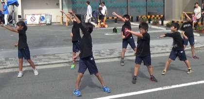 京の通り名のわらべうたを京炎ようにアレンジした曲のリズムにのって踊ります。