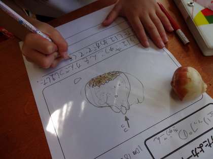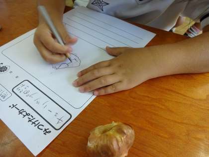 生活科でチューリップの球根を観察しました。