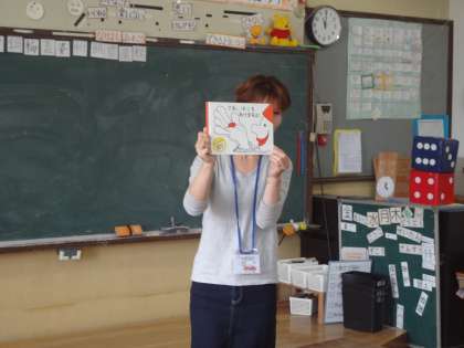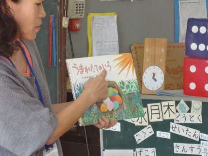 今月のお話は・・・「だるまさんが・だるまさんの」「うまれたてのいろ」「やまのバス」「さあ,はこをあけますよ!」を読んでいただきました!「わあ!」と喜ぶ話と静かに聞く話をしていただきました。