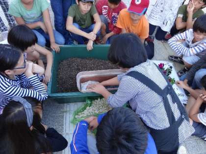 なるほど! 来年,植え替えをするときに,土と石が混ざってしまうと手間がかかります。先を見通しておくと,また来年も花で学校を彩ることが楽しみになります。