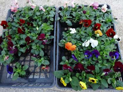 プランターの準備ができるのを待ち遠しそうに,お花たちが待っています。