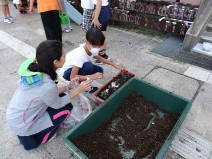 という2つを教えてくれました。今は,少し隙間があるのですが,みんなで育てていくとさらに見応えのあるプランターになるのです。