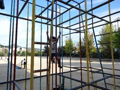 大人だと気をゆるすと頭をぶつけるのですが,子どもたちにとっては動きやすいようです。でも,落ちないように無理しないでね。