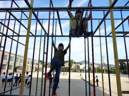 5・6年生の委員会活動の間,「おおぞうさん」で遊んでいる低学年の子どもたちは,じゃまにならないように,大声を控えめに協力してくれていました。