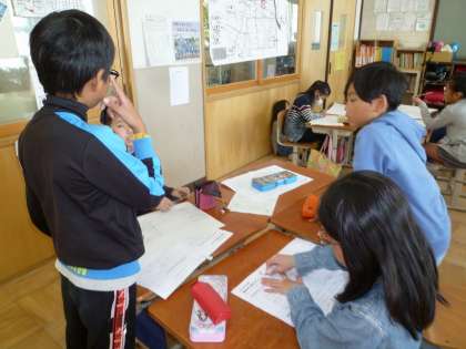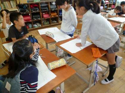 発表会に向けてグループごとに,それぞれ調べたことをまとめています。だれもが住みやすい町にするために,私たちができることは何かを考えて交流しています。