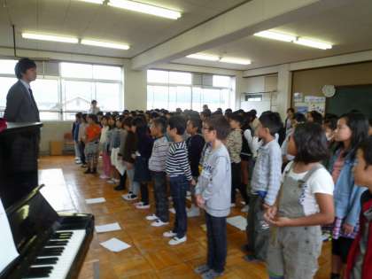 学習発表会の歌の練習をしました。きれいな歌声で歌えるように,あくびをする時のように口を開けて,言葉を大事に歌っています。