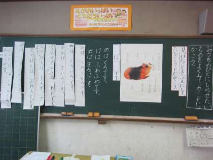 学習の最後に,黒板に貼られた文をどのような順序にしたらわかりやすくなるか,みんなで考えました。次の時間には自分たちの短冊カードを並び替えていきます。