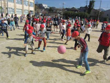 1年生は,この日をとても心待ちにしており,「はやく中間休みにならへんかな〜」といった声も朝から聞かれていました。どのクラスの子どもたちもボールを投げたり,逃げ回ったりと,とても楽しそうにしていました。