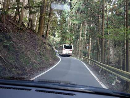 山の中を、ゆっくりと進むバス。