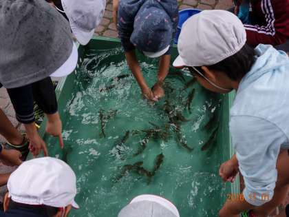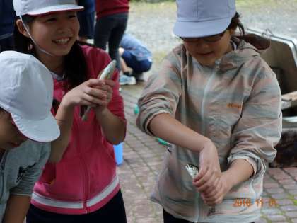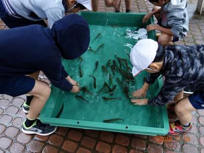 この活動は、命への感謝の学習です。普段何気に食べている私たち。実は、いろいろな命をいただいて、生きているのです。生きている魚を自分たちでつかまえ、食するという活動。食べること=命をいただいていること をしっかりと心に刻んでおいてほしいと思います。