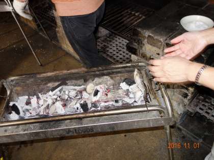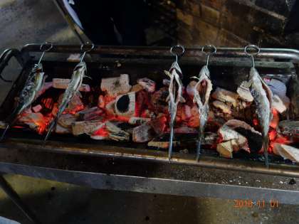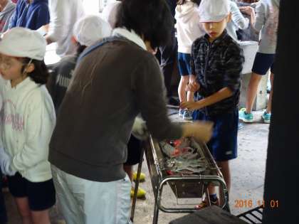 外はとても寒いので、魚を焼いてくれている先生たちに、「いいですねー、暖かくて」と言いながら近寄ってくる子どもたち。