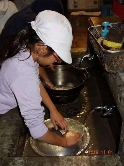 これでもか というほど磨いて、食器かごに入れると、次に待っているのは 洗い方の検査。無事に検査にとおるのか・・・