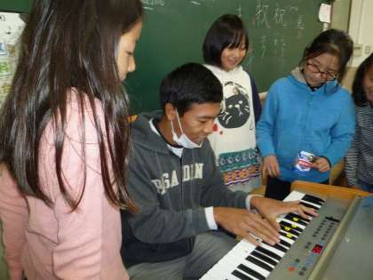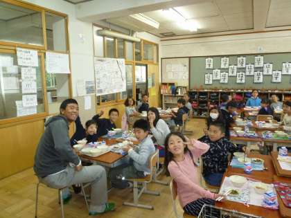 14日の給食の時間にALTの先生が教室に来てくれました。好きな食べ物を聞いたり,特技を聞いたり・・・楽しい時間となりました。そして昼休みには,ピアノを演奏してもらいました。とても上手で,みんなびっくりしていました。