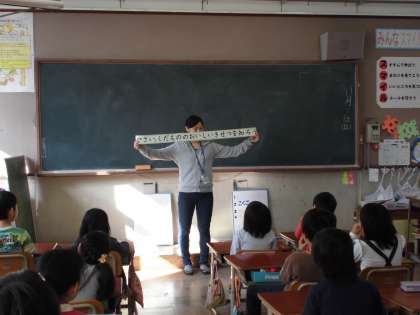 栄養教諭の先生に,果物や野菜の旬の季節について教えてもらいました。