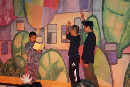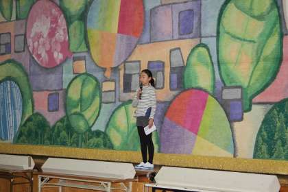 最後の挨拶です。舞台に上がる前,「ウー〜〜」と緊張していたのに,始まるとしっかりとした口調で挨拶してくれました。さすがです。
