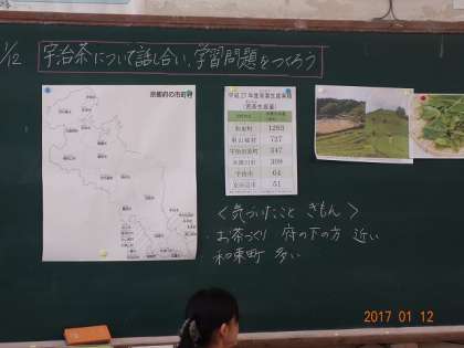 何の学習? そう,宇治茶の学習です。京都府の特色ある地域を勉強しているのですが,