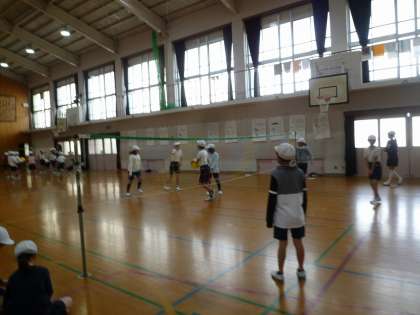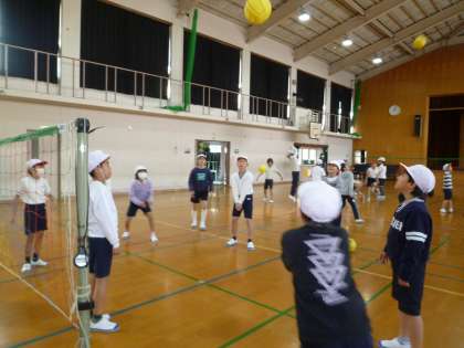 体育で「ソフトバレーボール」に取り組んでいます。4年生にとってサーブを相手コートに入れるのはなかなか難しいようです・・・。次回は,ボールを1回でかえすのでなく,チームでボールをつないで相手コートにかえすことをめあてにします。