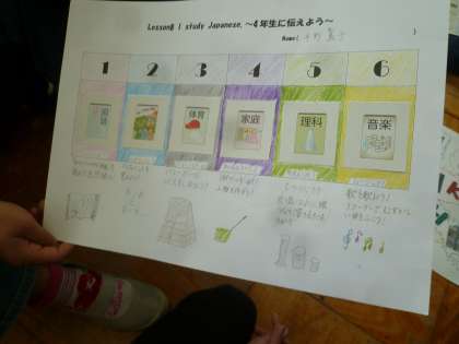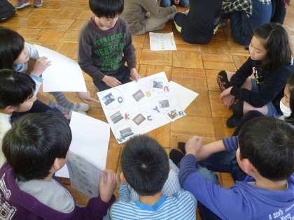 4月から始まる外国語活動でどんなことをするのかを,5年生から紹介してもらいました。教科を英語でどのように言うのか,カードももらいました。4年生はとても楽しみにしているようです。