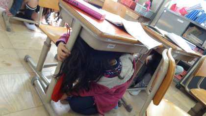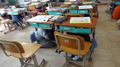 地震が起きたことを想定してのシェイクアウト訓練がありました。